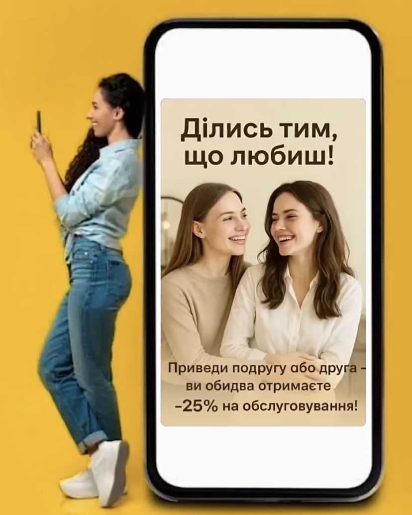 Приведи подругу/друга - і ви вдвох отримаєте знижку -25% на обслуговування